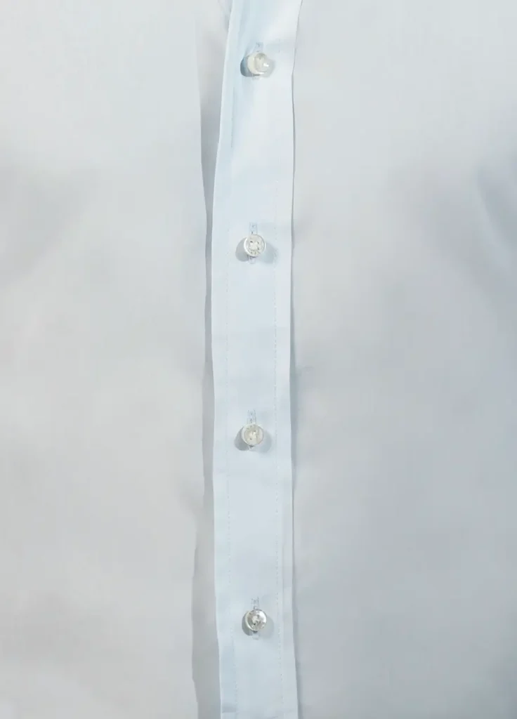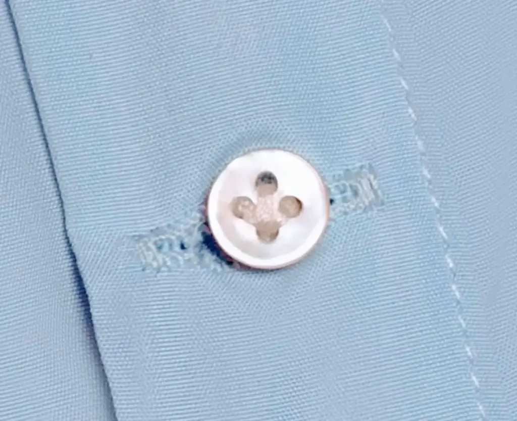 Loose buttons can be a big nuisance. Not with our shirts though! Our Mother of Pearl buttons have an additional thread wrapped around the stitch that attaches them securely to the shirt, preventing them from loosening with wear. The shank also creates space between the button and the fabric, reducing strain when fastened and preventing centric wrinkles around each button. It also makes buttoning the shirt easier.