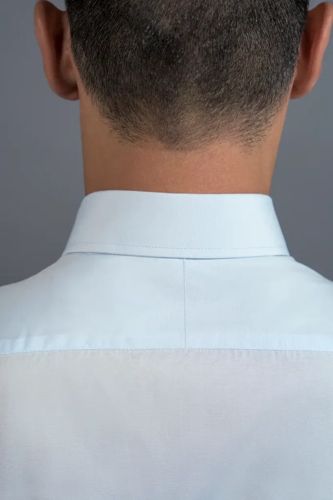 It adds structure and symmetry to the shirt by always holding the collar in place, giving a consistent, clean, and symmetrical appearance.
