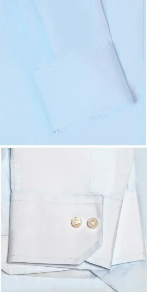 Most of our esteemed clients prefer two-button cuffs for their versatility (second image). The choice, as always, rests with the client!
